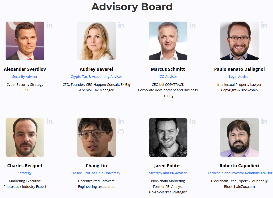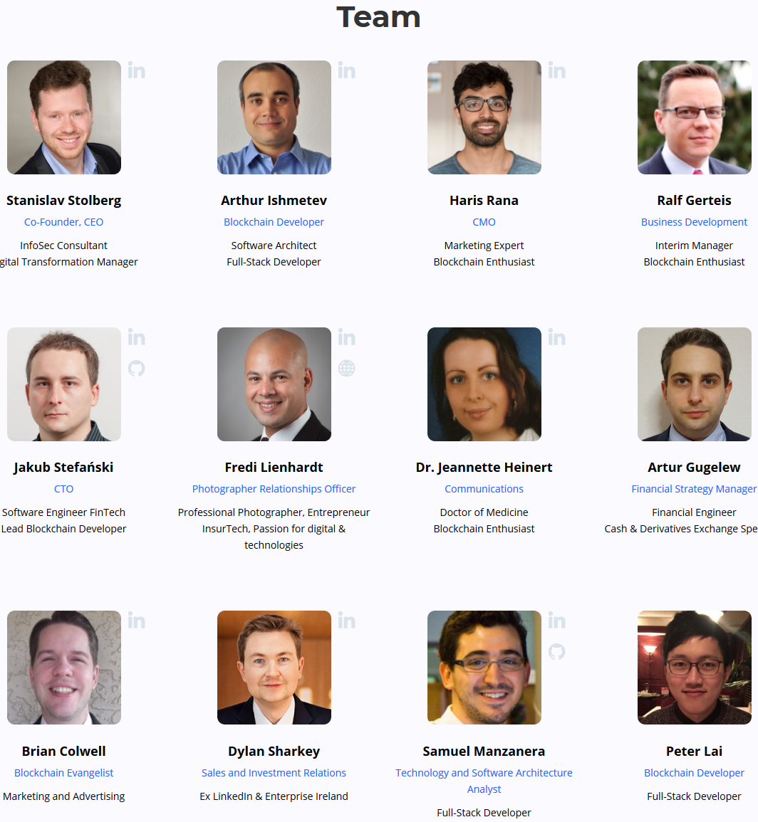 Nhờ MVP demo hấp dẫn của chúng tôi, các thẩm phán có thể thấy hình dung chính xác sản phẩm cuối cùng sẽ trông như thế nào ngoài những gì chúng tôi sẽ đạt được cho các nhiếp ảnh gia. Chúng tôi hợp tác với Swisscom Blockchain được đánh giá cao để tư vấn về ICO và chiến lược tương lai của chúng tôi.